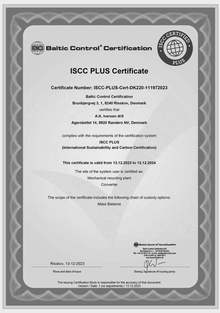 Opfylder kravene i certificeringssystemet ISCC PLUS.